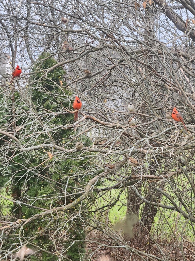 sitting peacefuly in the trees….taking turns, snatching seeds….flying sideways, through the sky….needing no reason, never asking why…..