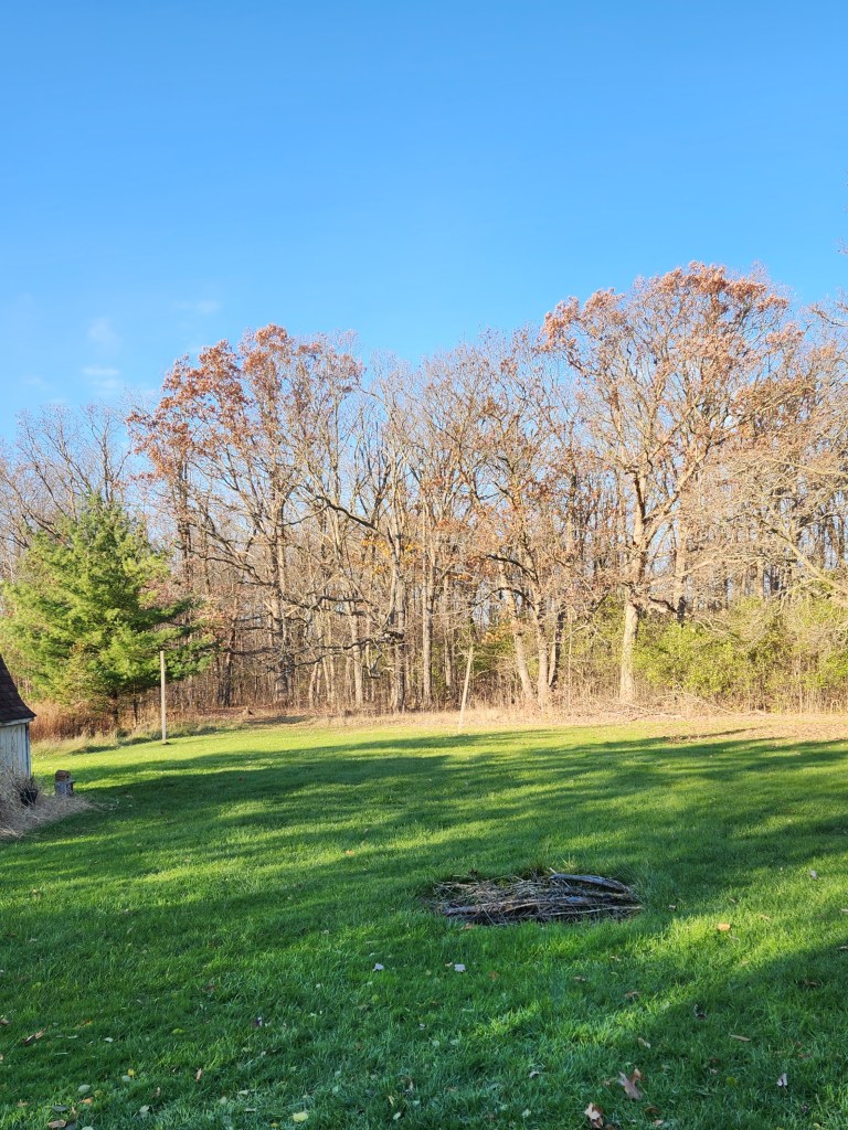 blue skies…..leafless trees…grass so green….peaceful, restful…..natures scene….