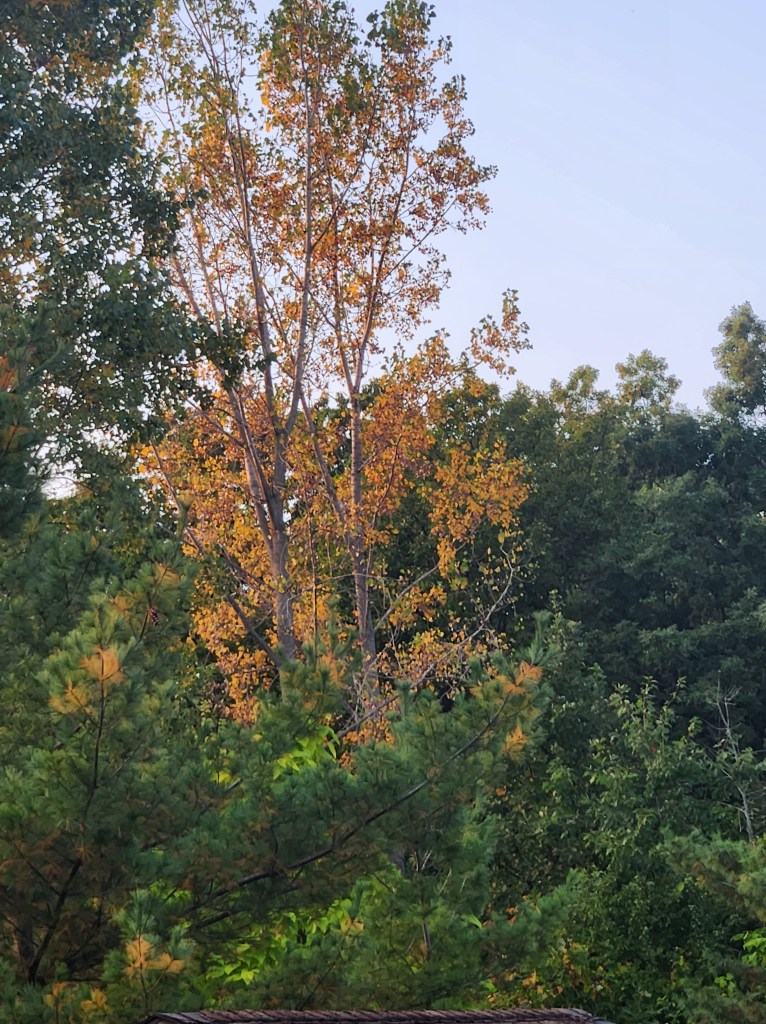 leafs changing, blue skies…crisp air intertwining. peaceful serenity…soothing my restless wandering soul…..