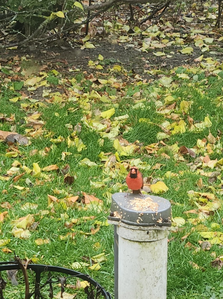 alone in the rain….look of disdain….chirping don’t tease…sunflower seeds……Please….